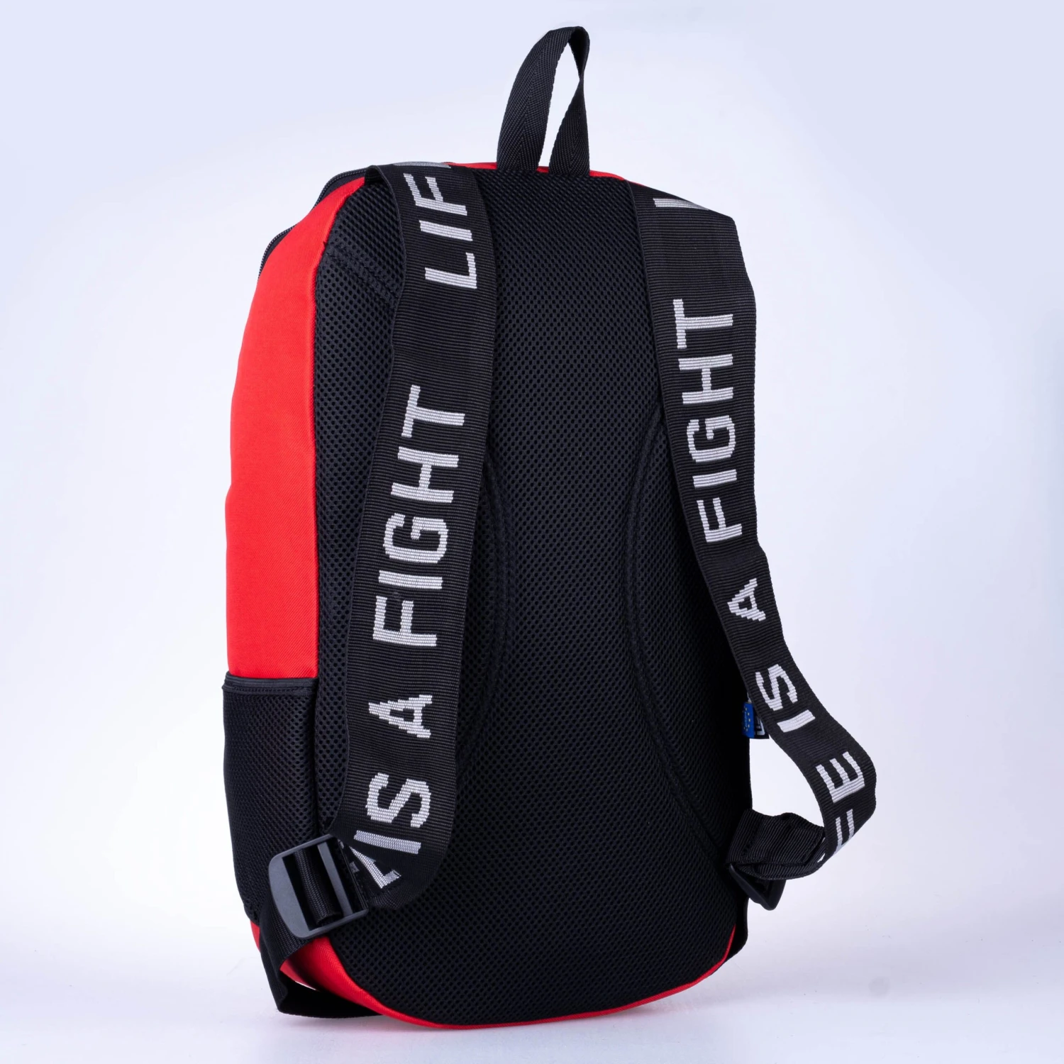 A necessity reflex element on the back of the backpack is  in a form of  a Fighter logo.Â