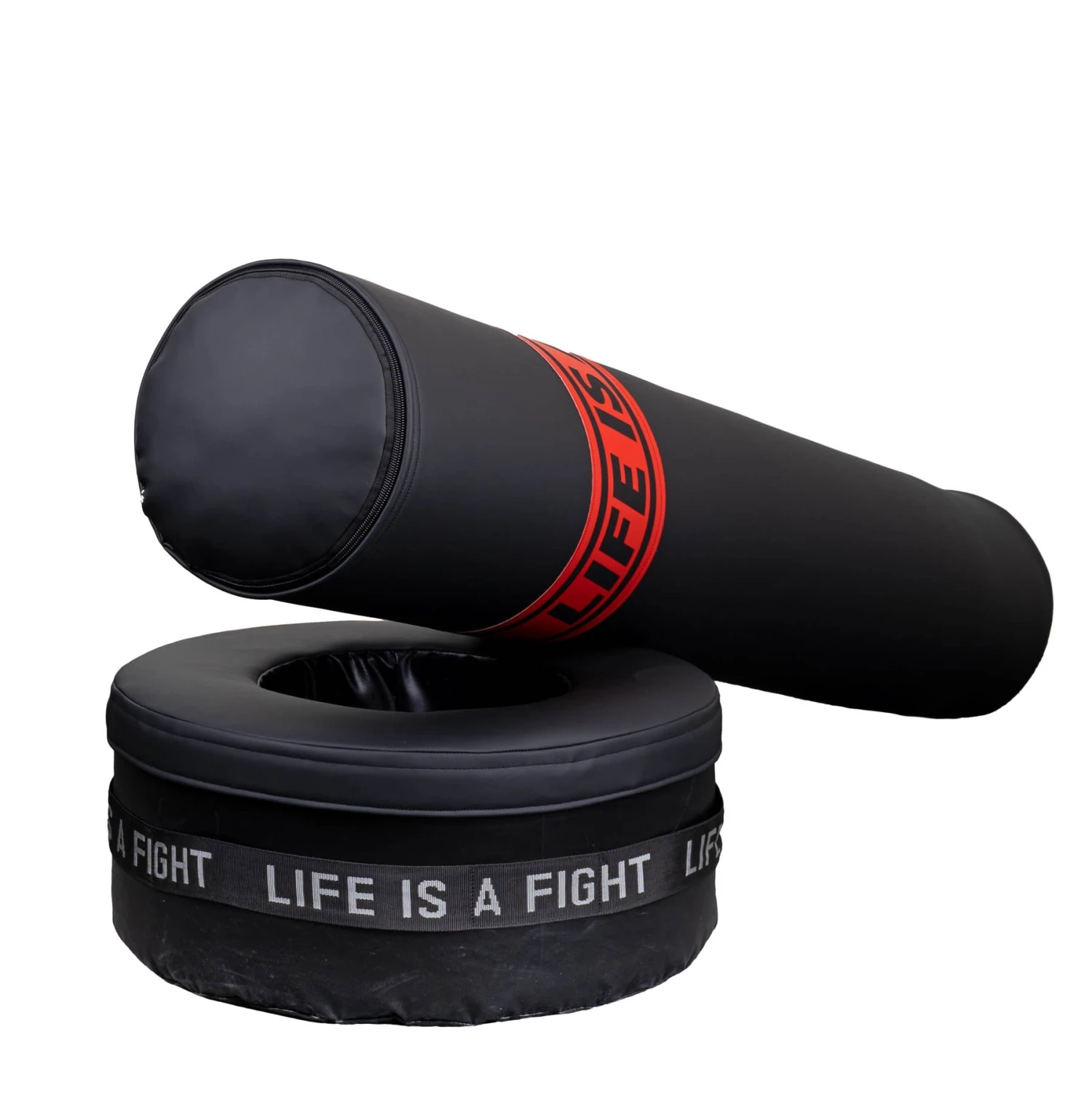 The outside layer of both, the base and the body is made of highly durable Conti Artificial Leather  (made in EU). The bag is filled with several layers making the bag long-lasting as well as comfortable to punch/kick.