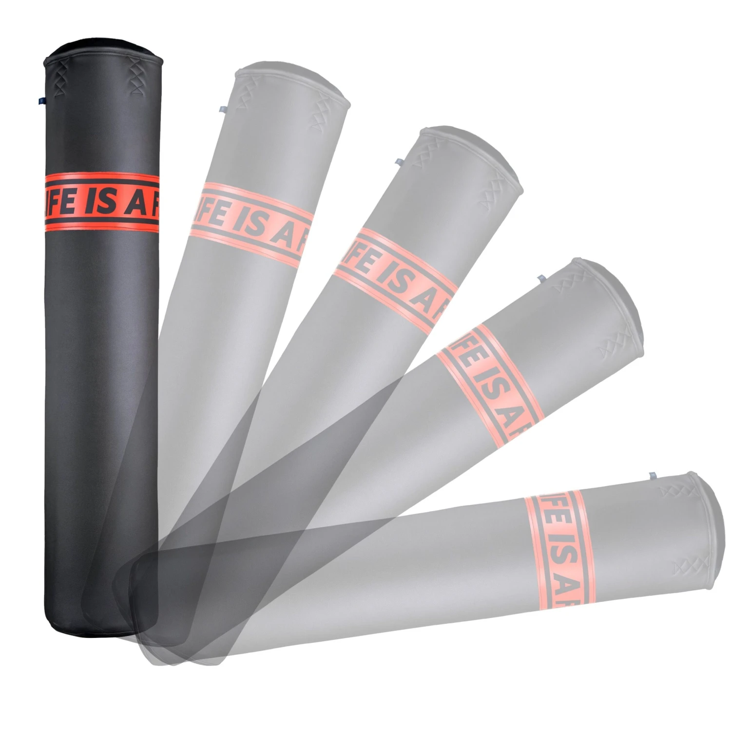 Fighter “The GROUND & POUND boxing bag” is filled with fabric core and PUR foam. There is a softened layer of EVA foam around the entire inner side of the bag, which ensures regular shape of the bag. It also serves as an impact layer that absorbs impacts. The bag is filled by machine, so the sagging of the filling is minimal. The diameter of the bag is 32 cm. We produce it in a size of 150 cm.