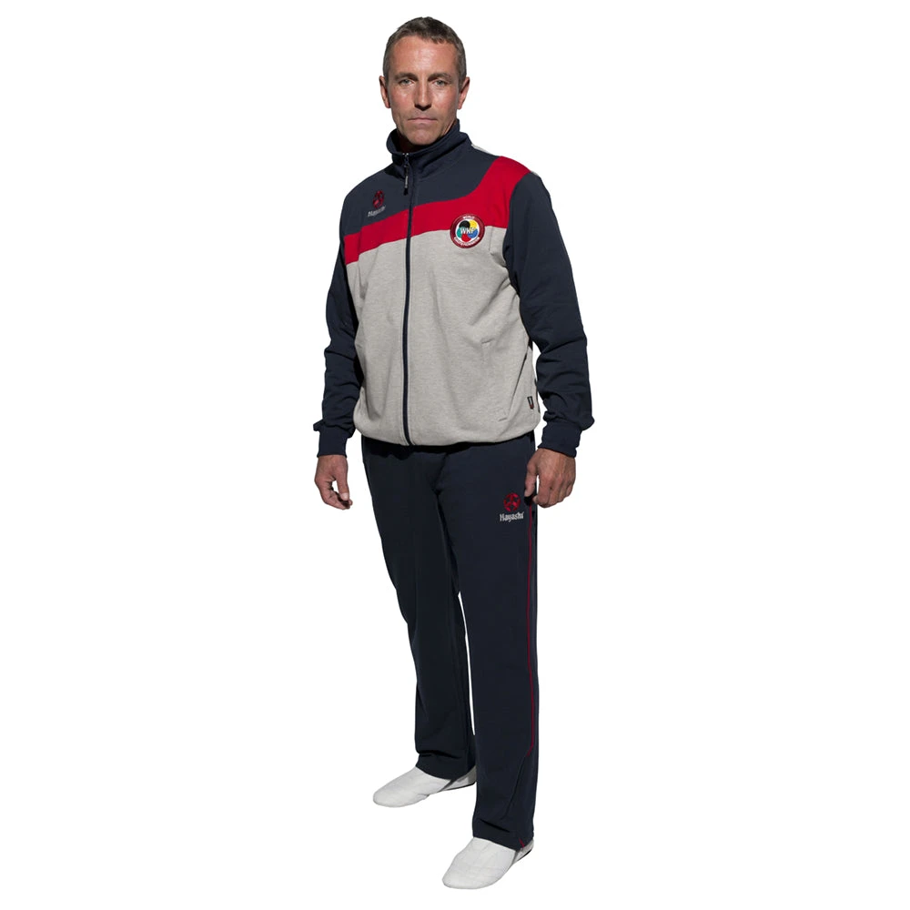 The TOP TEN High class processed fitness suit without lining. Jacket and pants have 2 open side pockets and carry both the TopTen patch. Jacket with elbow patches in sleeve color. Material: 95% cotton / 5% elastane.